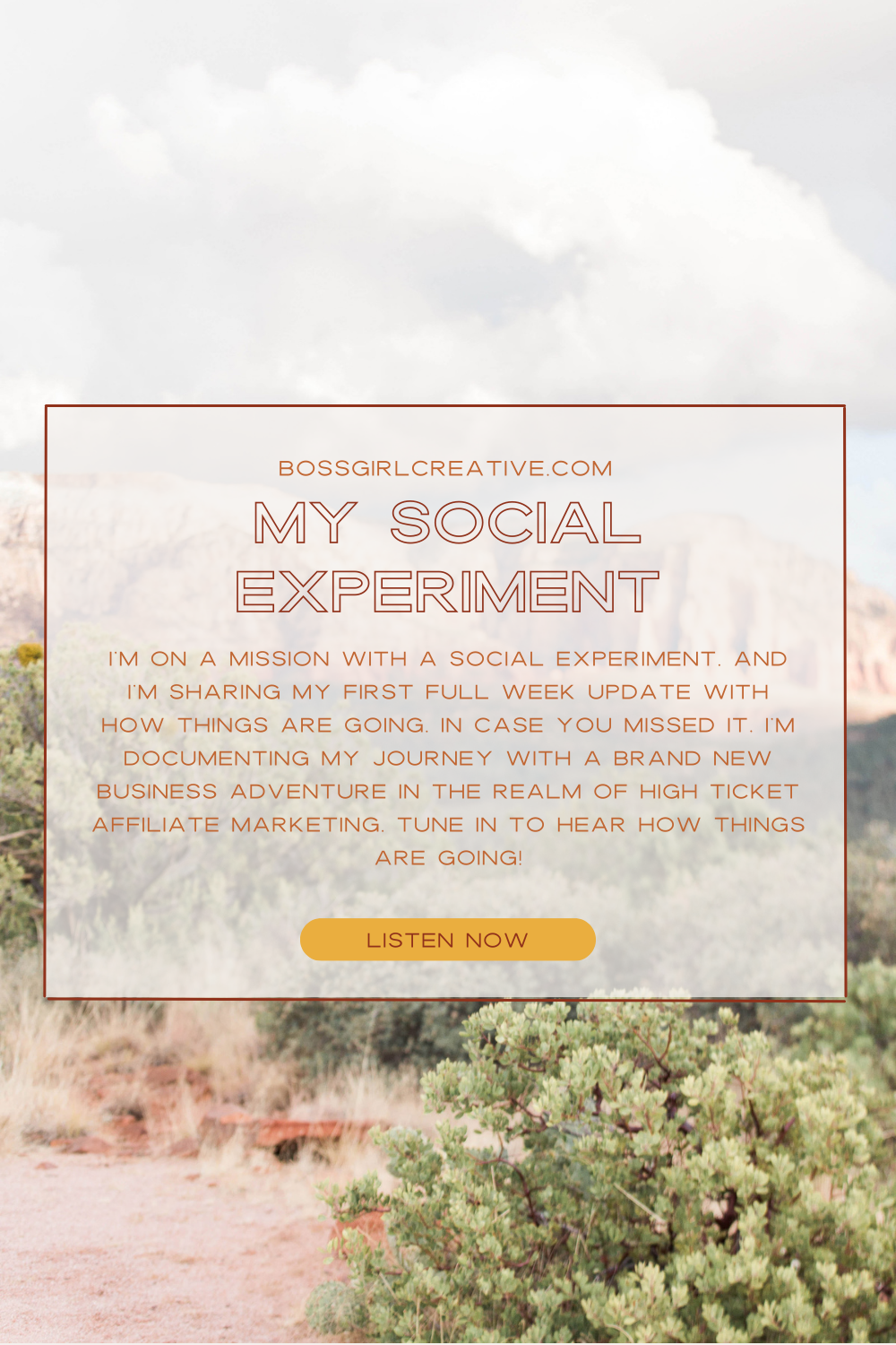 I’m on a mission with a social experiment. And I’m sharing my first full week update with how things are going. In case you missed it, I’m documenting my journey with a brand new business adventure in the realm of high ticket affiliate marketing. Tune in to hear how things are going!