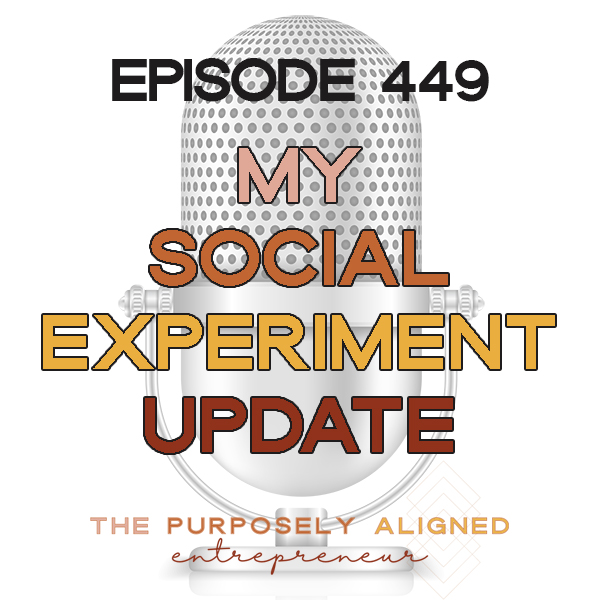 * Welcome to the 449th episode of the The Purposely Aligned Entrepreneur Podcast!! In this episode, I’m sharing an update into my first week with my social experiement.