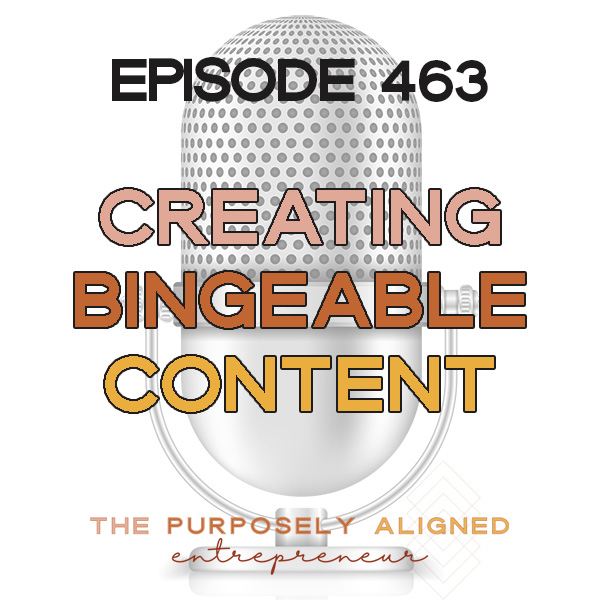 * Welcome to the 463rd episode of the The Purposely Aligned Entrepreneur Podcast!! In this episode, I’m giving sharing how to create bingeable content.