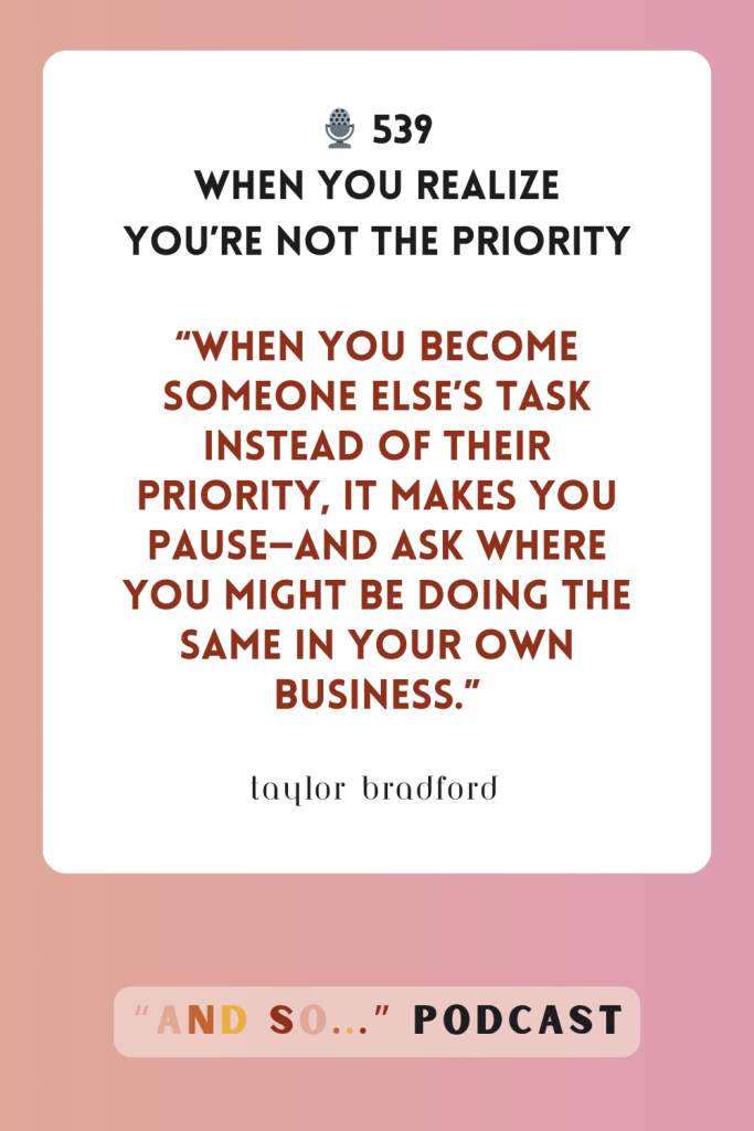 - Welcome to the 539th episode of the And So… Podcast!! In this episode, I share the moment I realized I wasn’t the priority—and what changed when I decided I had to be, in both business and how I show up for my people.